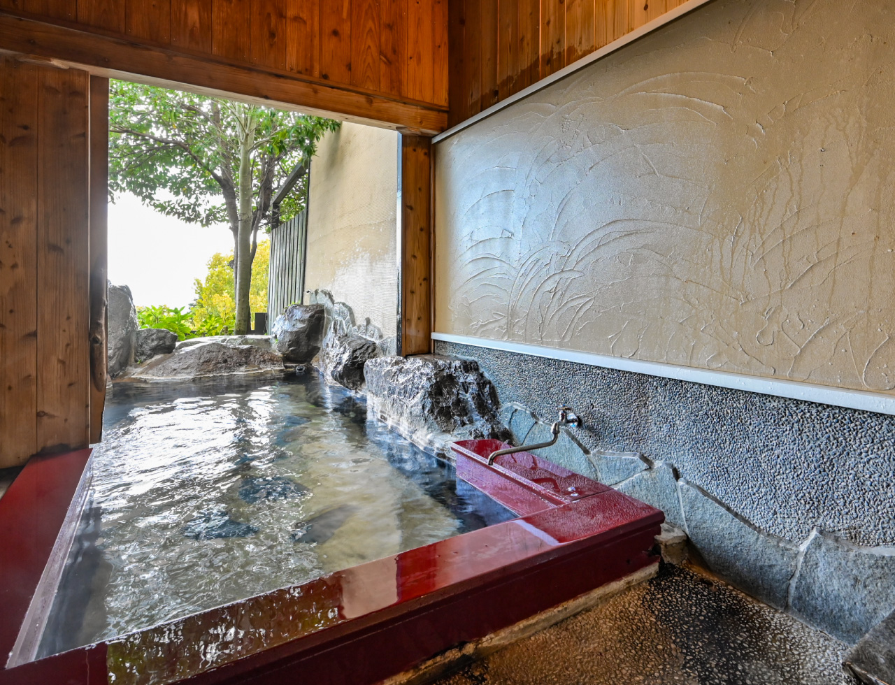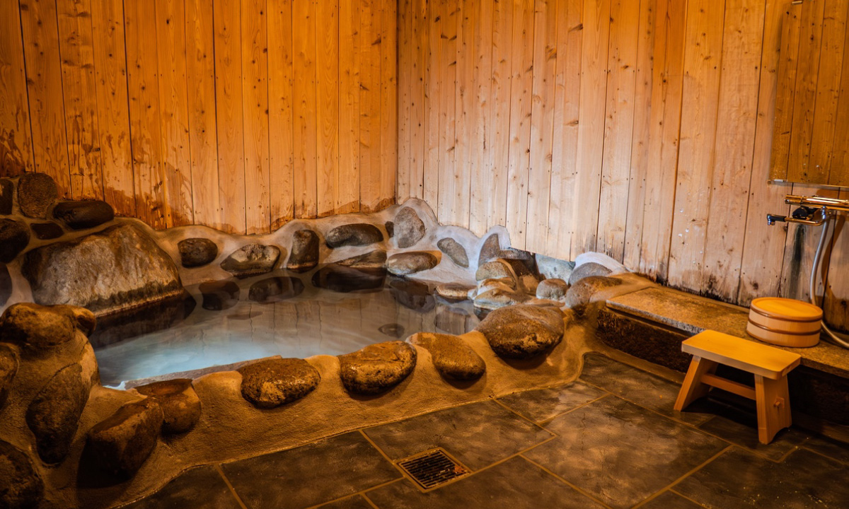 堀田温泉掛け流しの気持ちよい温泉で、心ゆくまでおくつろぎください。