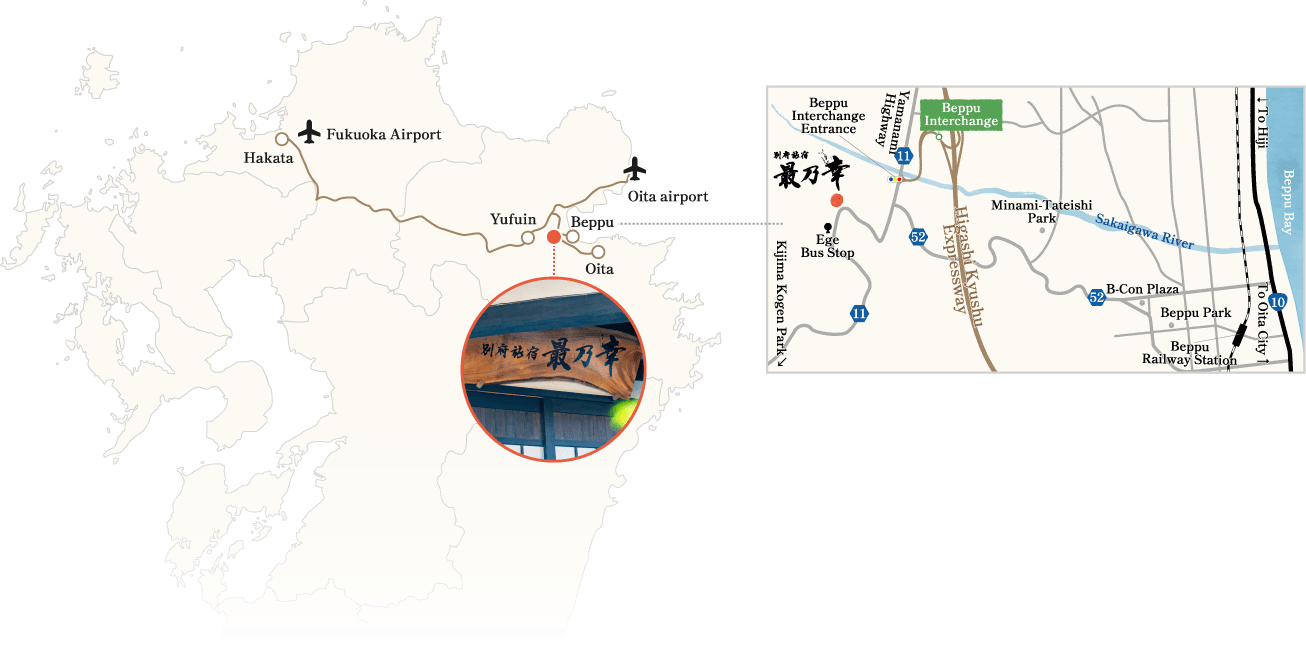 | Getting here | [Driving Here] Take a left at the first traffic signal at Beppu Interchange, head to “Kijima Kogen Park”, and drive 1 minute [Getting here by railway] Get off at JR Beppu Station (Nippo Main Line), take the bus at the station, and get off at “Ege” (1-minute walk) |