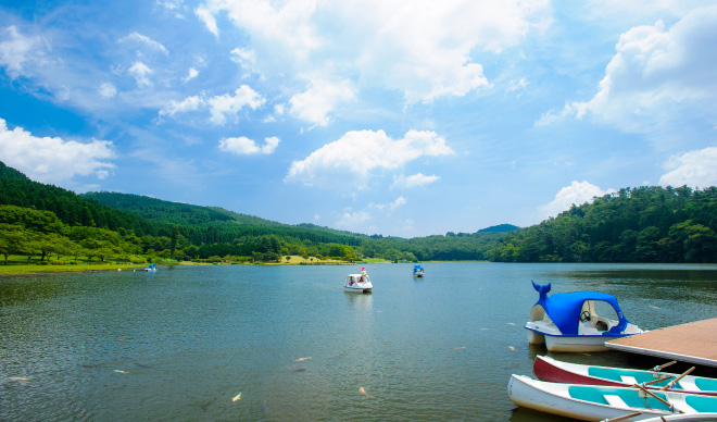 A transquil lake at the mountains inside Aso Kuju National Park that will leave you speechless