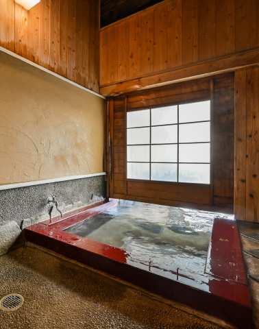 Remove all clothing in the changing room. Onsen bathing is done without any clothing, so please rinse your body thoroughly before entering the bath.