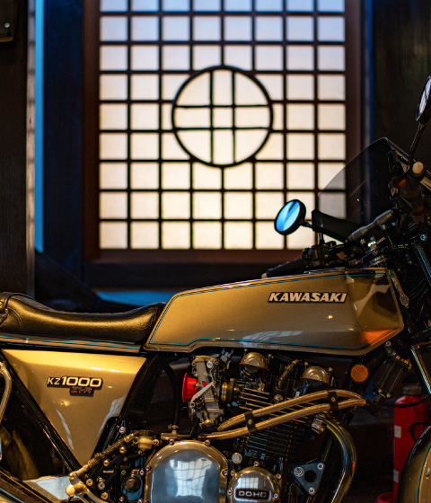 A quaint table made from a single sheet of wood, a comfortable sofa, and an unforgettable motorbike. Welcome to our world. We look forward to serving you with our unique worldview.